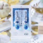 今までご縁がなく初購入でした。耳飾りの色味を合わせてくれたのか偶然なのかランダムのチャームも綺麗な青で揃っていてとても嬉しかったです。 チャームのひとつはお仕事で愛用してるボールペンのクリップ部につけてモチベアップアイテムにしました。 購入させて頂いたお品物大切に使わせていただきます。 ありがとうございました。