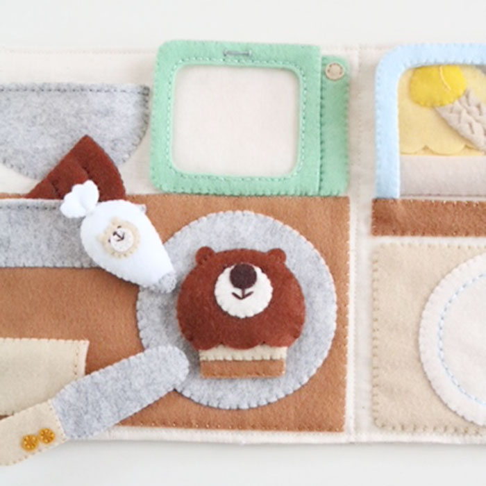布絵本づくりで大切にしていることは、「安心安全の布絵本であること」、「手や指、頭を使って遊べる知育要素を取り入れること」、「お子さんにとって「楽しい!」はもちろん、ママにもワクワクしてもらうこと」、「片付けまで楽しめること」。そして、もうひとつ大切にしているのが「余白をつくること」です。