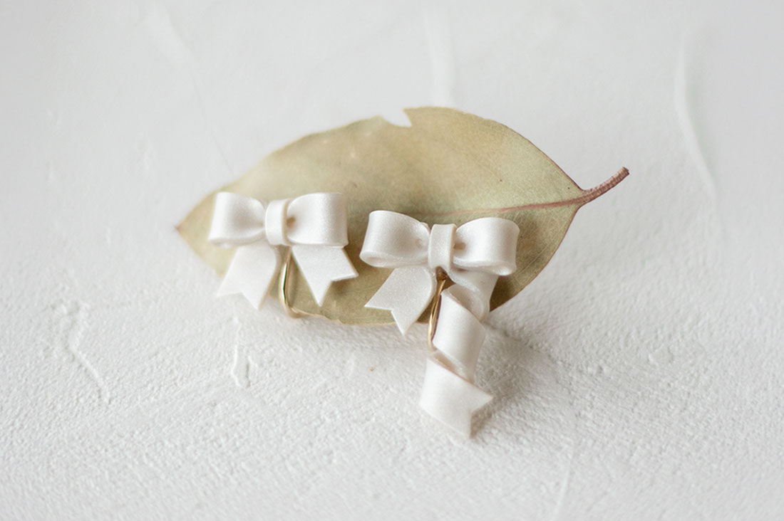 大人かわいいリボンのフォルムと、くるんとしたカールのディテールがとにかくお気に入りで、シンプルなコーディネートでもこれひとつつけるだけで一気に華やかになります。ポリマークレイならではのセミマットな質感も絶妙で、甘すぎず落ち着いた印象にまとまるのがうれしいポイント。軽いつけ心地なので一日中つけていても疲れにくく、気づけばアクセサリー選びに迷ったらまずこれに手が伸びる、そんな存在になっています。
