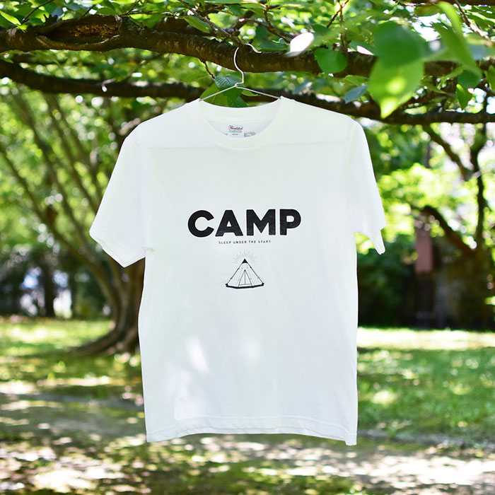自然の中で、自分のテントで過ごす特別な時間に向けてつくられたTシャツ。シンプルでダイレクトなタイポグラフィが、アウトドア気分をより一層盛り上げてくれます。