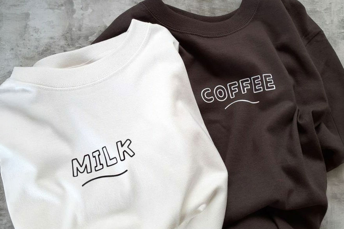 日常使いしやすいカラーで、「MILK」と「COFFEE」のロゴがかわいいペアTシャツ。さりげなくペアルックを楽しめるデザインです。大きめサイズでゆったり着られるのもうれしいポイント。